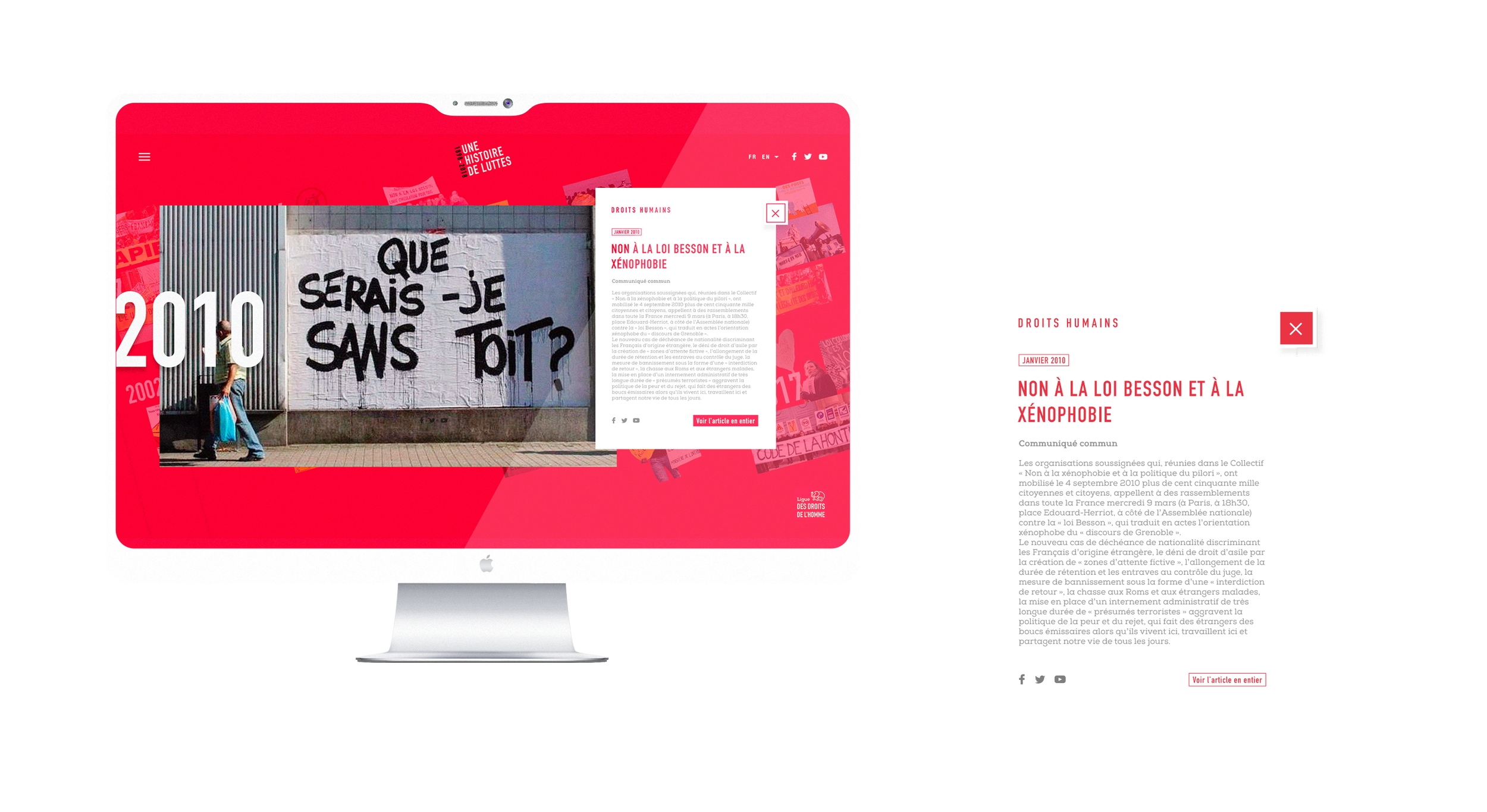 This project offers a journalistic retrospective in the form of interactive timelines, organized around the major themes of the LDH’s mission.