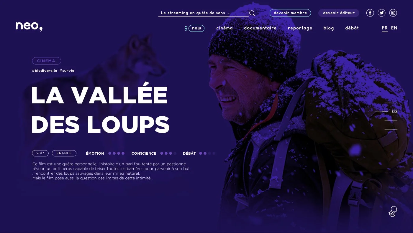 After selecting a specific industry and conducting a full market study, I decided to create Neo, a free online streaming platform offering content aimed at raising awareness and stimulating meaningful debate in the entertainment world.