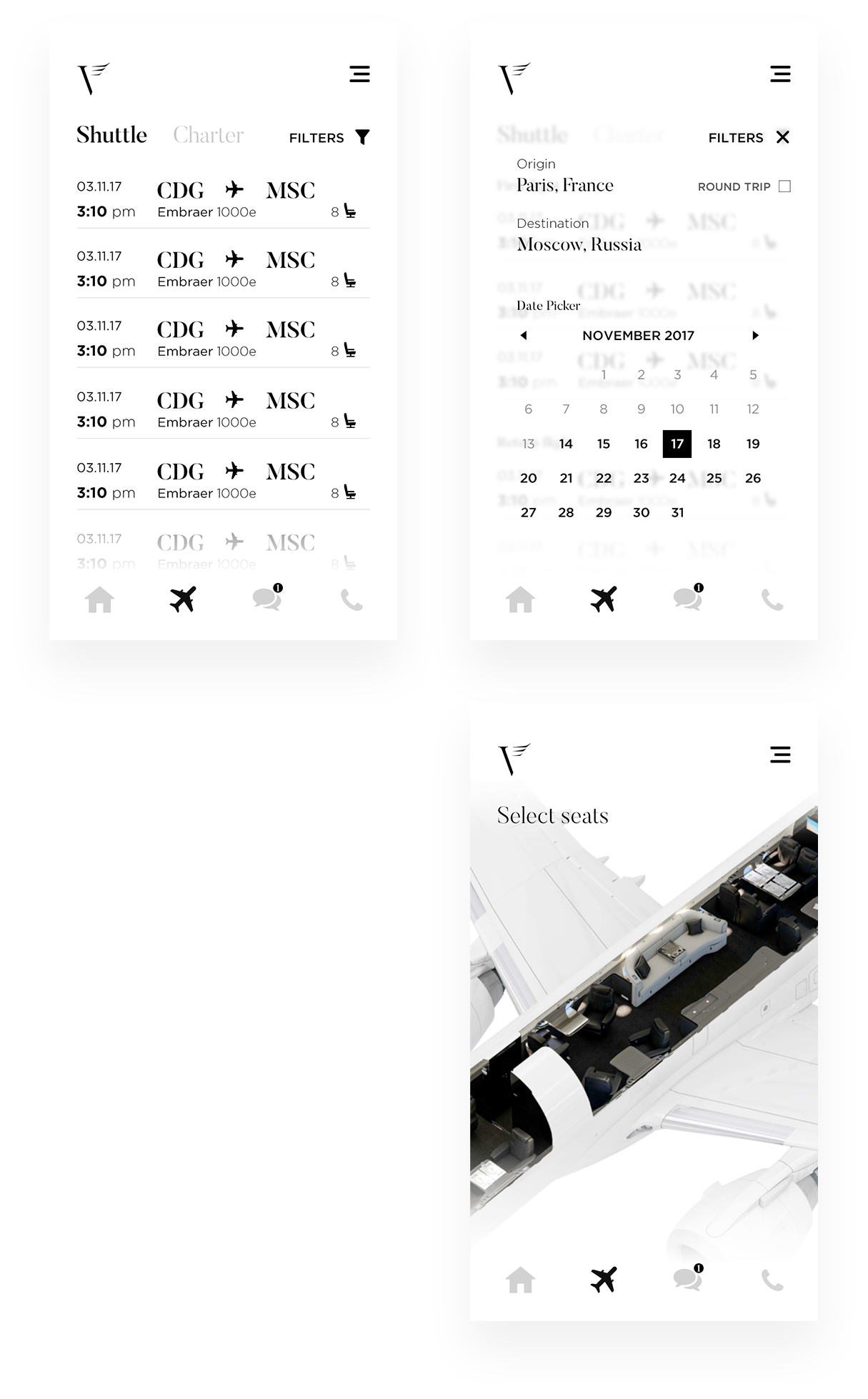 Create a showcase website and a booking application for Vipping, a private flying club offering comfortable charter flights worldwide.