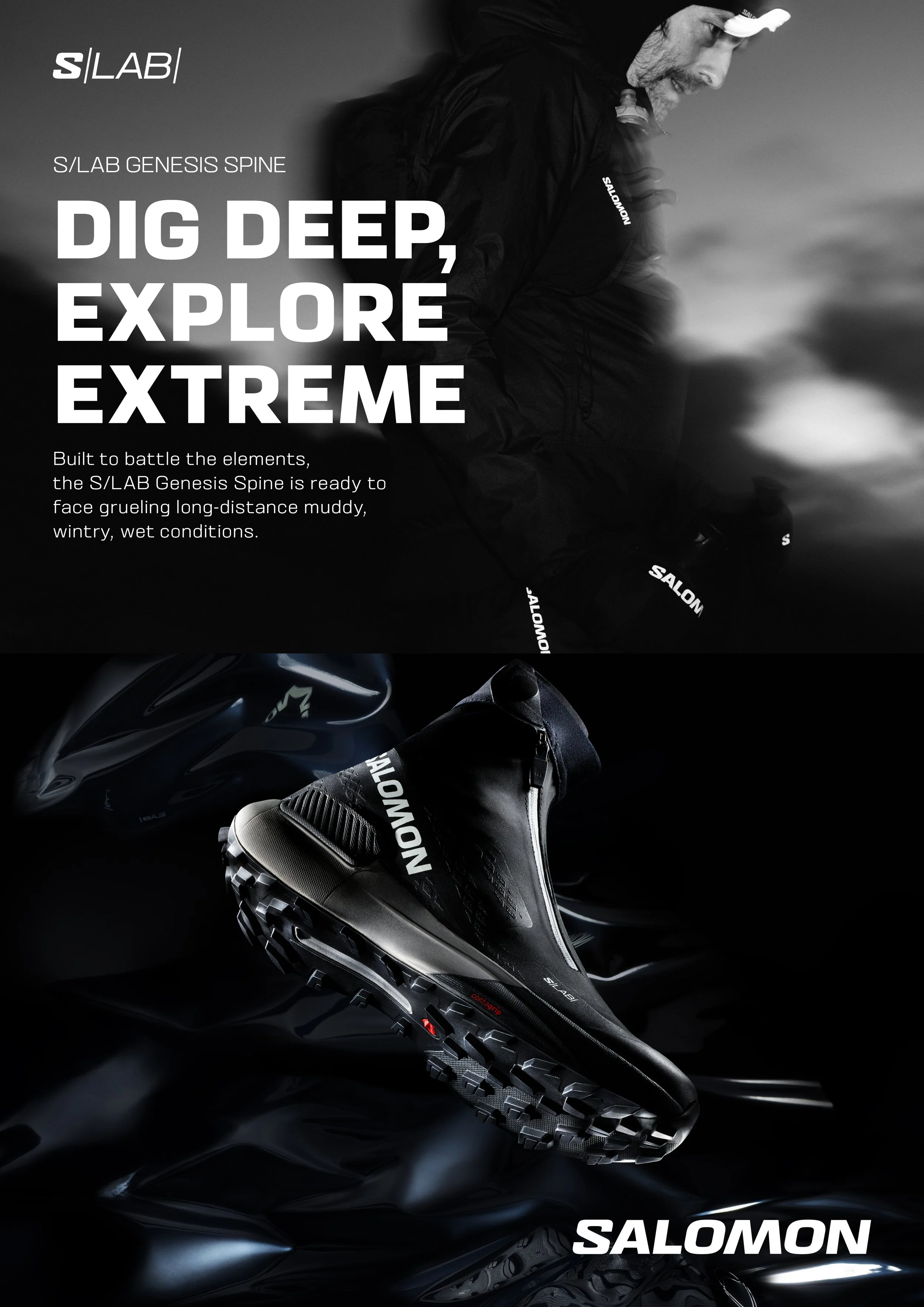 Create a campaign for Salomon's S/LAB trail line to promote the new S/LAB Genesis Spine, the first comfortable trail shoe designed for long-distance and snowy weather adventures.