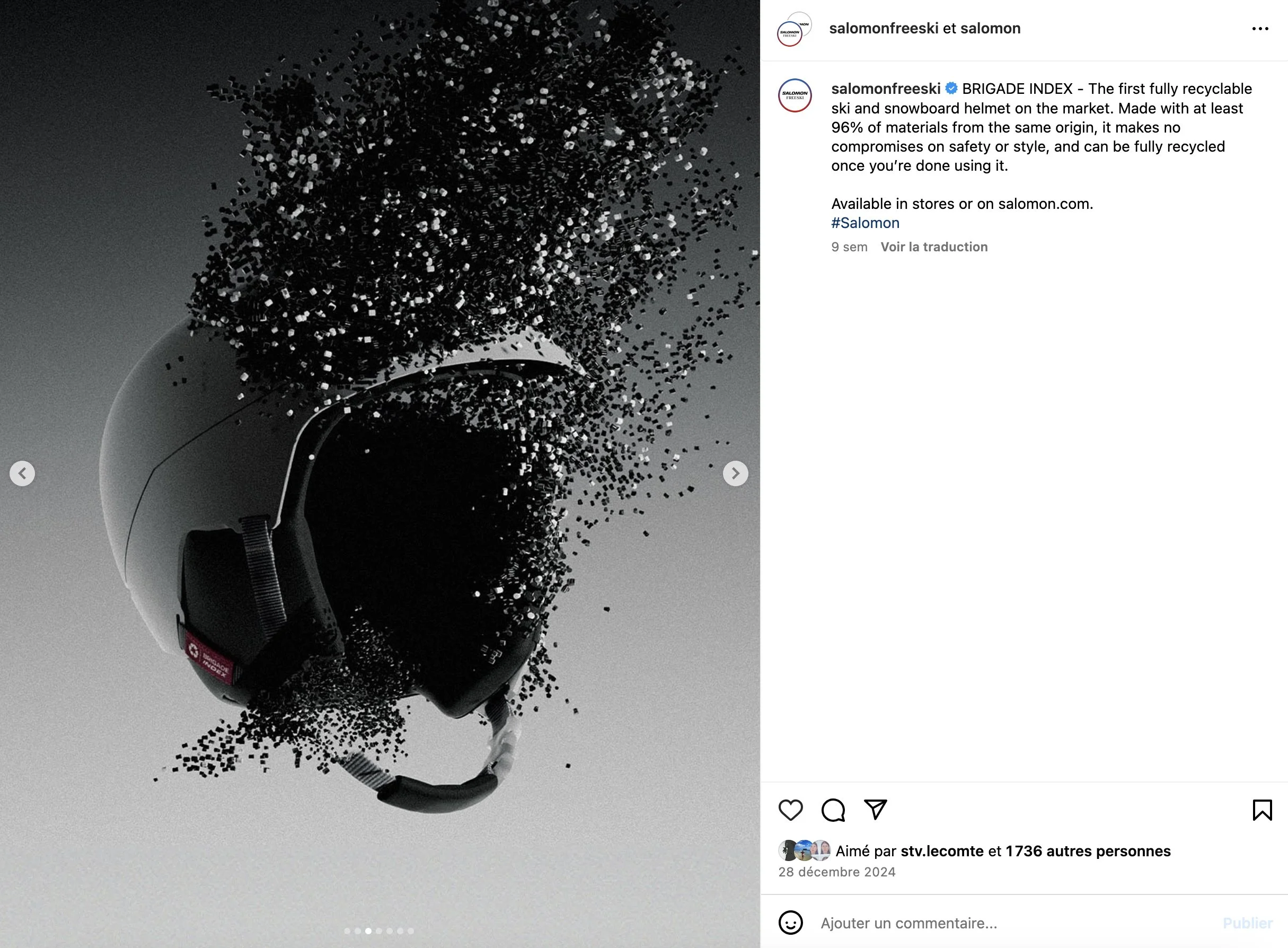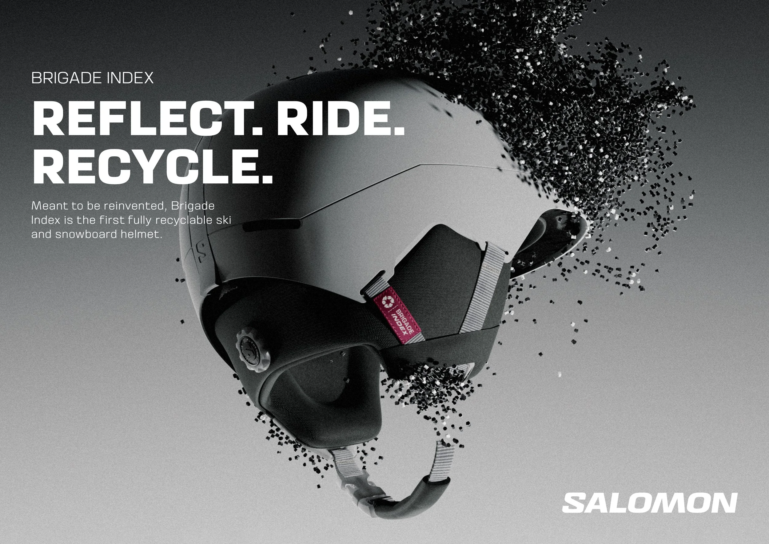 Create a campaign for Salomon's Active Protective section to promote the new Brigade Index ski helmet. It is the first fully recyclable ski helmet made from recycled materials.